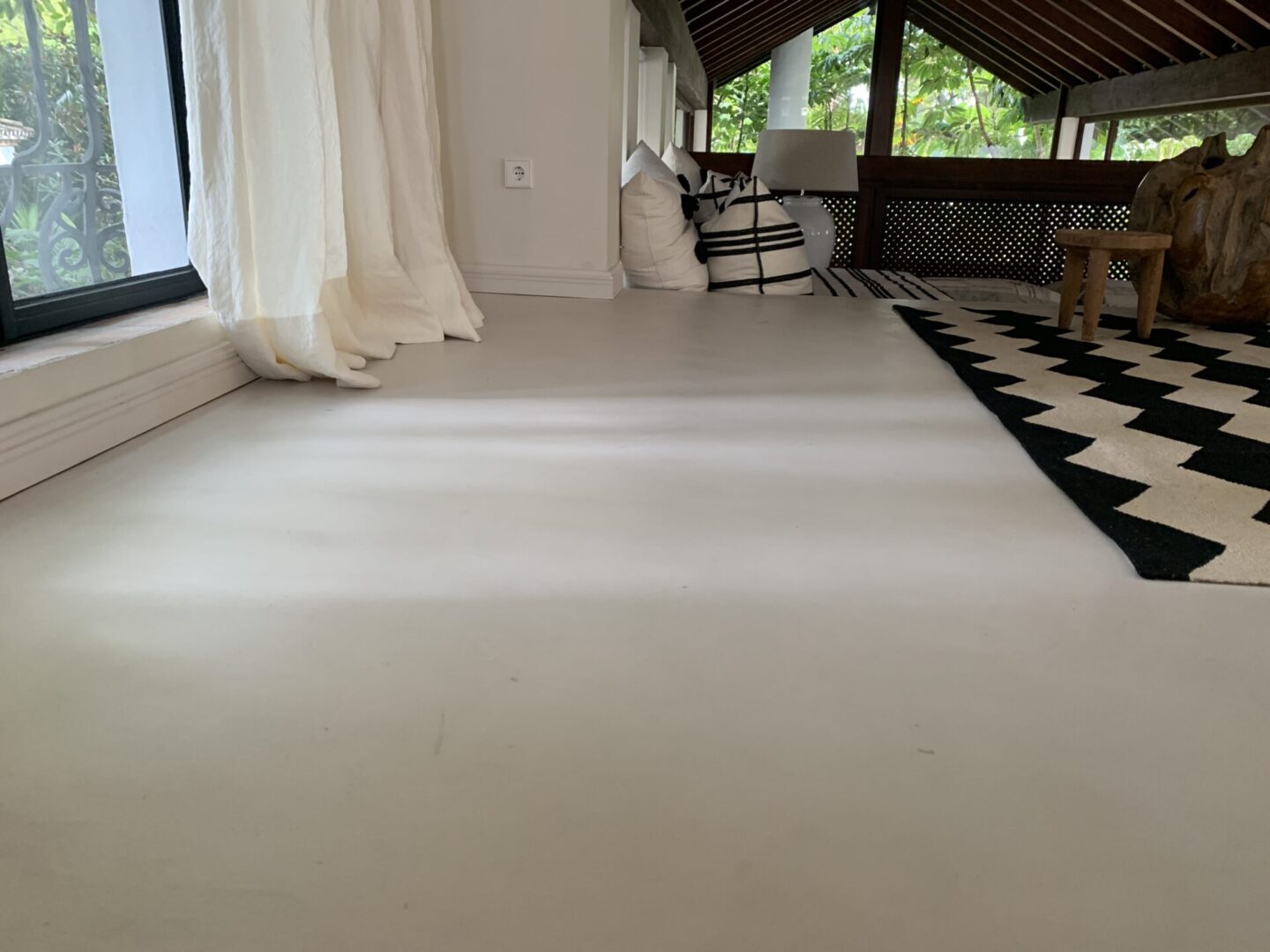 Se aplica en capas finas, lo que permite renovar superficies sin generar grandes recrecidos. Esta característica es especialmente útil en reformas donde se busca actualizar el espacio sin alterar en exceso puertas, encuentros o niveles existentes.